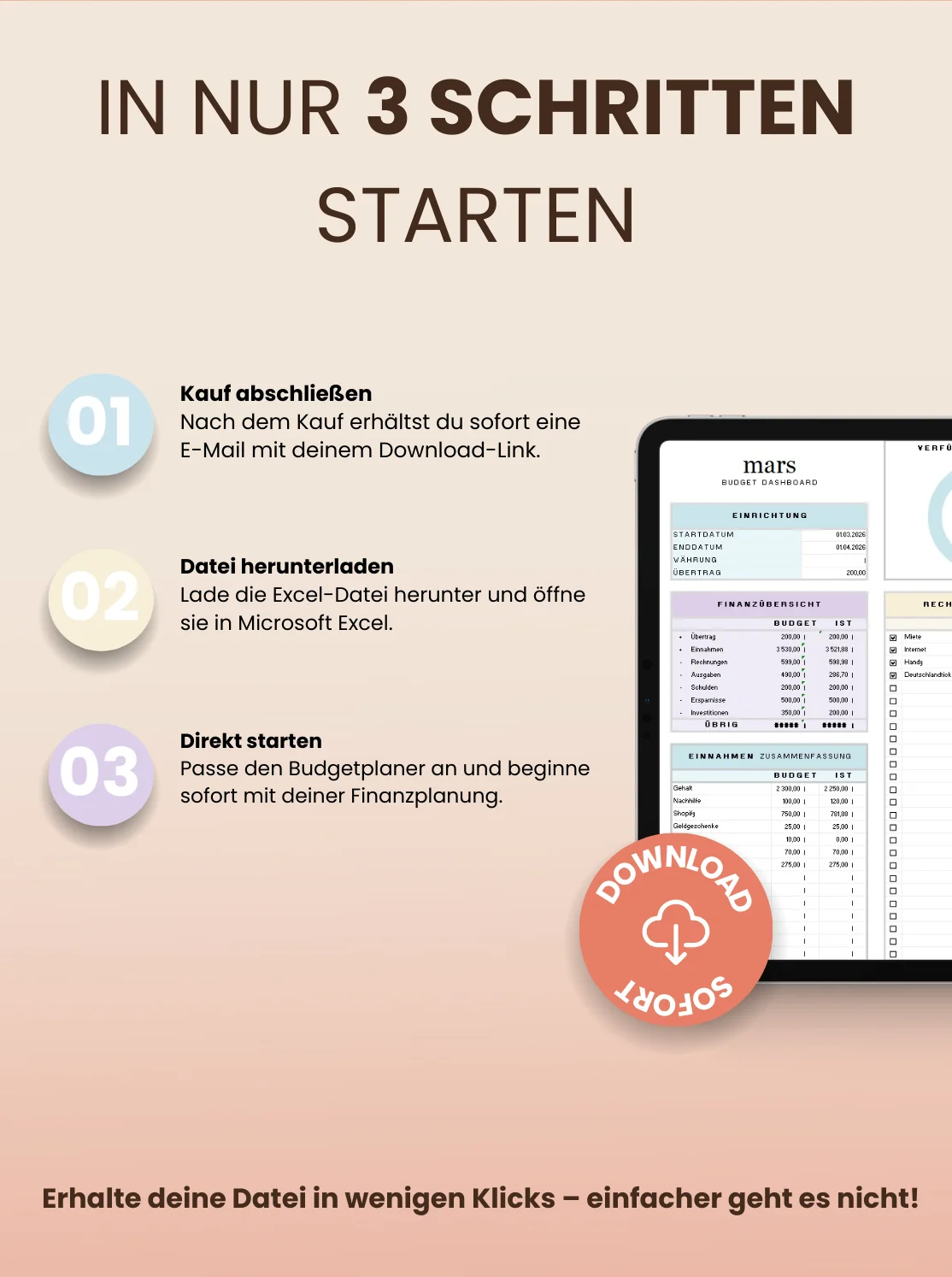 Sichere Zahlung, Datei sofort per E-Mail erhalten. Excel + Google Sheets inklusive.